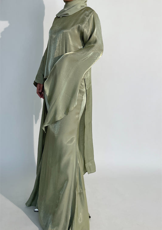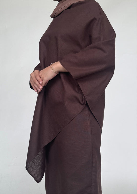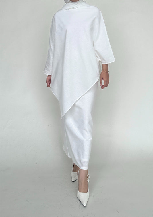 Designed with an elegant asymmetrical cut, this set embodies modern modesty with timeless sophistication. Its flattering silhouette and meticulous craftsmanship make it a staple for effortless elegance.