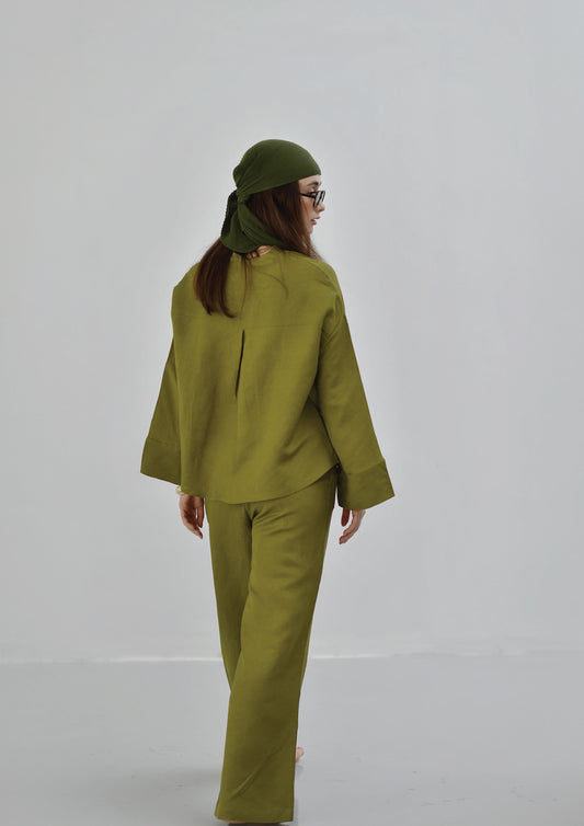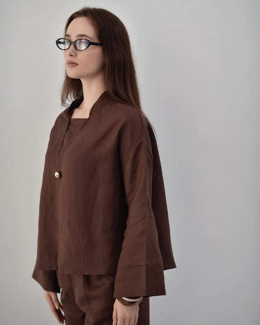 True linen with a touch of viscose for a soft, flowing feel. Timeless pieces you can wear every day or for special occasions.