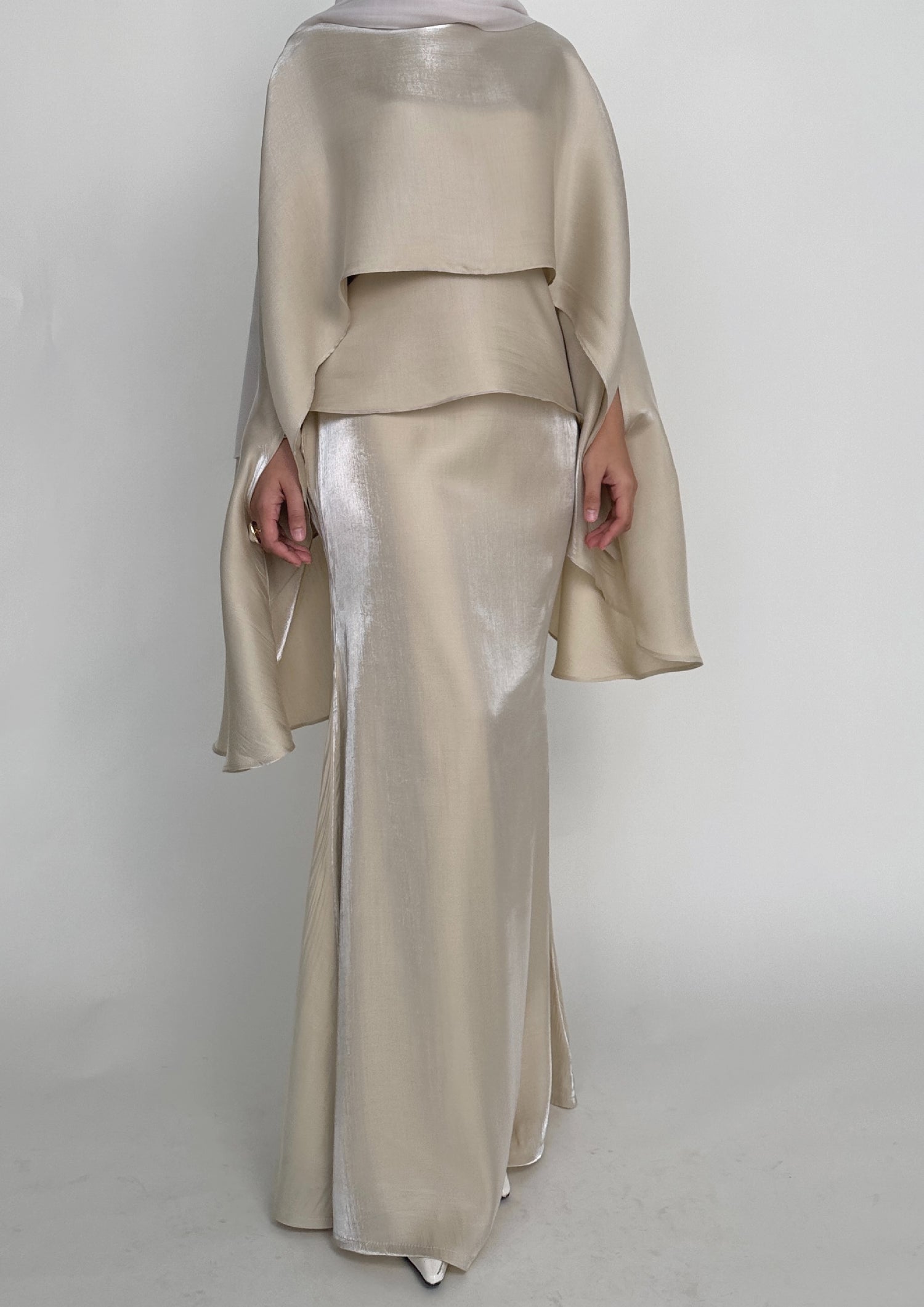Designed with an elegant asymmetrical cut, this set embodies modern modesty with...